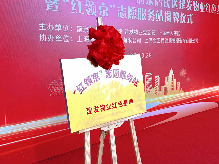 10月29日上午,金山区金山卫镇金玥湾小区内人头攒动、暖意融融,一场以“红色前京 情暖重阳”为主题的便民集市活动热闹开集。活动现场设置便民服务、医疗就诊、图书休闲三大功能区域,将政策咨询、健康守护与文化暖意精准送达居民身边。活动当天,还举行了前京居民区建发物业红色基地暨“红领京”志愿服务站揭牌仪式。